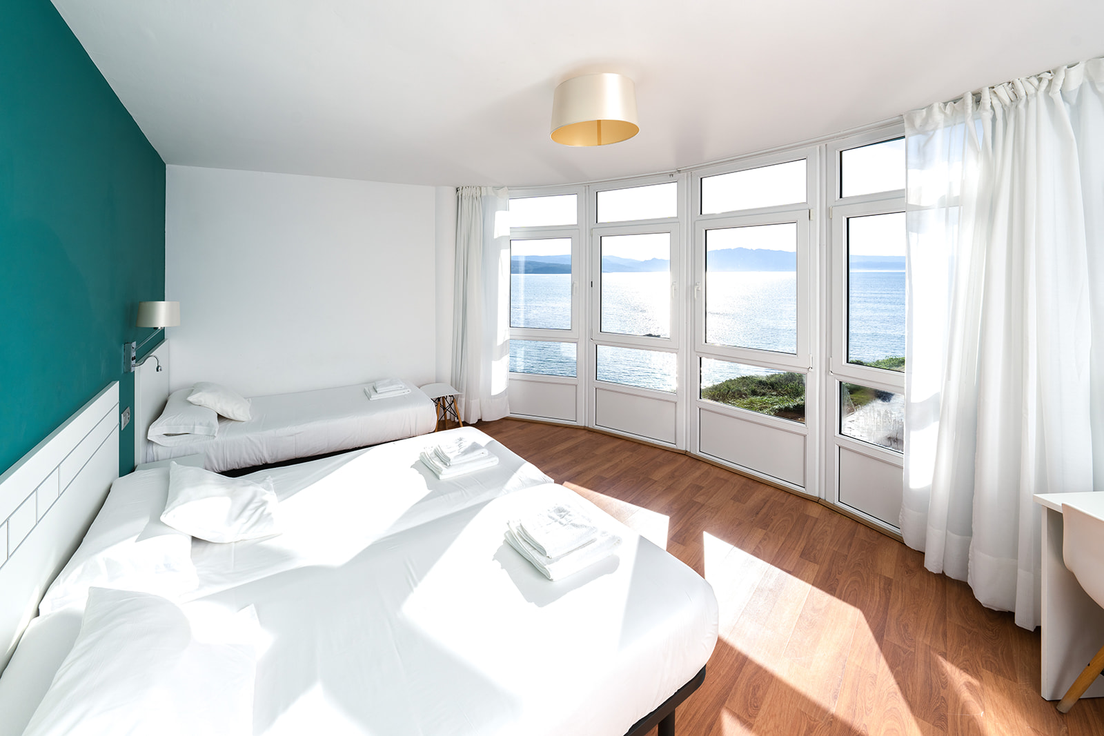 Son habitaciones triples que tienen vistas al mar y al puerto con tres camas de 90 cm. Tienen una superficie de 19 m² y están equipadas con TV de 28", armario de dos puertas, reposa maletas, escritorio con silla, teléfono, conexión a internet por WiFi y calefacción. Estes tipo de habitaciones disponen de galerias con dirección sur, desde donde se ve la ría y el puerto de Finisterre.